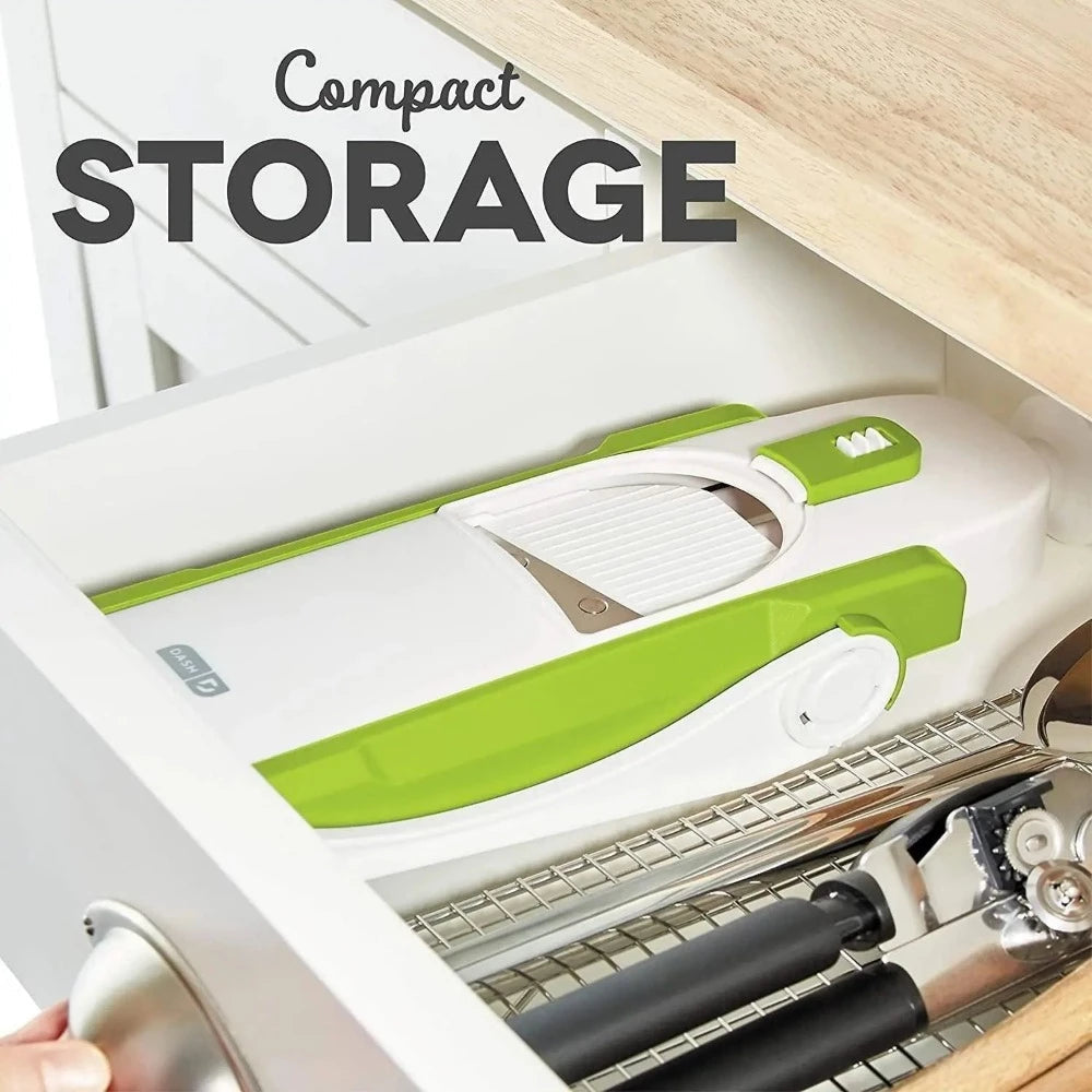 The slicer is made with a closed, protected cutting design, so your fingers never touch the blades. You get perfect slices without any risk.